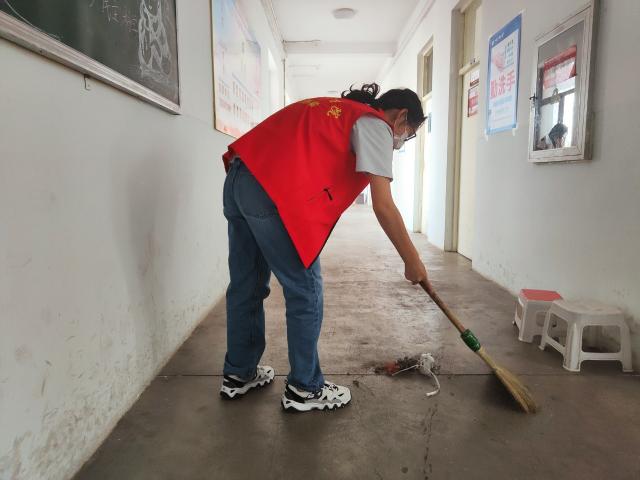 清扫过程中,同学们分工明确,认真清理过道里残留下来的垃圾,同学们相互配合,相互帮助,积极参与到此次的清扫活动中。