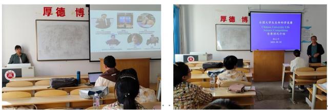 韩志平老师介绍了全国大学生生命科学竞赛参赛情况。韩志平老师是全国大学生生命科学竞赛科学探究类的评委,他指导的学生获得了山西省赛区第二届大学生生命科学竞赛的二等奖。韩老师结合自身指导学生参赛的经历和感悟,热情洋溢、诙谐幽默地解读了参赛的意义、规则和注意事项,并通过案例分析了参赛项目成功和失败的原因,鼓舞了老师们指导学生参赛的士气,提高了参赛的信心,也为日后的教学和科研提供了宝贵的经验。