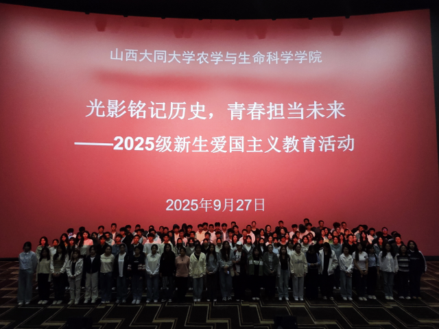 2025年9月27日下午,农学与生命科学学院组织2025级全体新生开展入学教育特别活动,通过集体观影《南京照相馆》深化爱国主义教育,引导新生在历史回响中凝聚奋进力量。此次活动作为新生入学教育的重要环节,以光影为媒、以历史为镜,为青年学子扣好“人生第一粒扣子”。