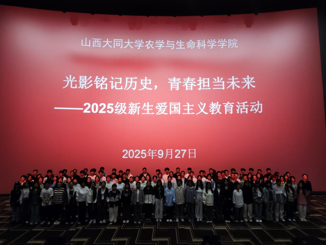 2025年9月27日下午,农学与生命科学学院组织2025级全体新生开展入学教育特别活动,通过集体观影《南京照相馆》深化爱国主义教育,引导新生在历史回响中凝聚奋进力量。此次活动作为新生入学教育的重要环节,以光影为媒、以历史为镜,为青年学子扣好“人生第一粒扣子”。