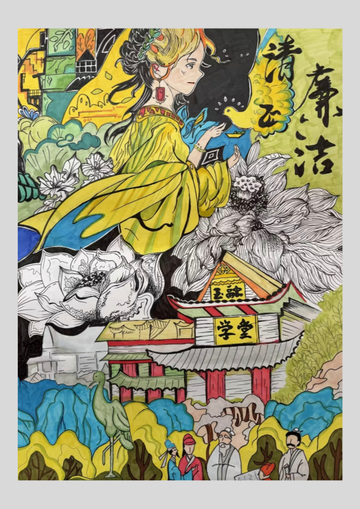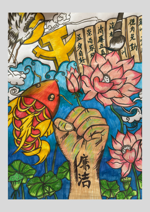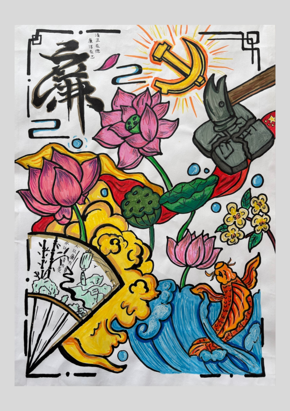 此次“绘莲于卷,植廉于心”海报展不仅是一场视觉艺术的集中展示,更是一堂沉浸式的廉洁文化公开课。作品中所承载的廉洁理念与青春思考,正悄然融入学生的认知与行动,为营造风清气正的育人环境注入源源不断的青春动能。学院将以此次展览为新的起点,持续拓展廉洁教育的形式与载体,通过举办主题团日、演讲比赛、故事分享,主题征文等多元活动,不断巩固和深化廉洁文化育人成效,引导学生在知行合一中筑牢思想根基,共同谱写校园廉洁文化建设的新篇章。
