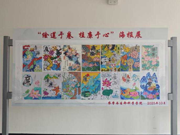 为深入推进廉洁文化育人实效,引导广大学子树立清正廉洁的价值观念,农学与生命科学学院精心策划并举办了“绘莲于卷,植廉于心”主题海报展。自作品征集启动以来,全院学生积极响应、踊跃参与。经综合遴选,最终14幅构思精妙、意蕴深远的优秀作品脱颖而出,入围本次展览。