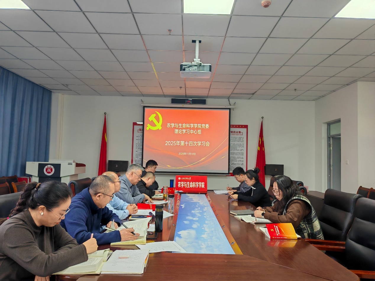 11月18日下午,农学与生命科学学院党委在北区教学楼D716会议室开展理论学习中心组2025年第十四次(扩大)学习会,学院党政班子成员、学院科级干部、各党支部书记、辅导员参加学习,院党委书记富中华主持会议。