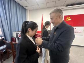 仪式在雄壮的国歌声中开始。院长白云峰宣读了新发展党员名单,范嘉宇等19 名同志光荣加入党组织。随后,老党员庄重地为新党员佩戴上鲜艳的党徽。一枚枚党徽不仅是党员身份的象征,更是一份沉甸甸的责任与期待的传递。在学院组织员武娟同志的领誓下,全体预备党员面向党旗庄严宣誓。铿锵有力的誓言表达了他们对党的无限忠诚与为共产主义事业奋斗终身的坚定决心。在场的老党员们也一同重温誓词,神情肃穆,初心再次被擦亮。