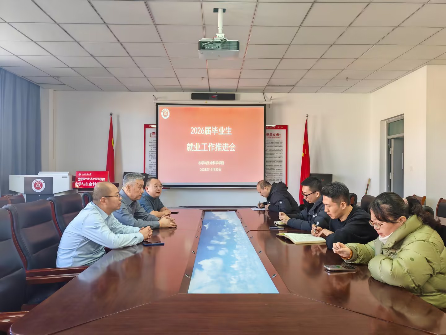 12月30日,农学与生命科学学院召开2026届毕业生就业推进会。学院党委书记富中华、院长白云峰、党委副书记伍聪、毕业班班主任及学院就业联系人参会。