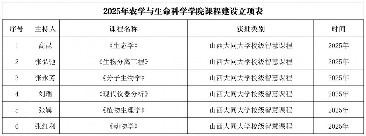 2025年农学与生命科学学院课程建设立项情况